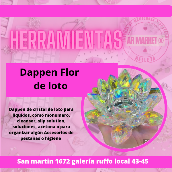 Dappen de vidrio cristal flor de loto para liquidos, como monomero, cleanser, slip solution, soluciones, acetona o para organizar algún Accesorios de pestañas o higiene